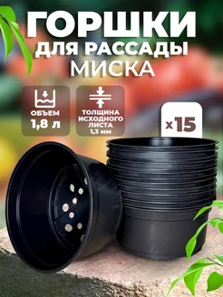 Горшок-миска 1,8 л, 15 шт, чёрный