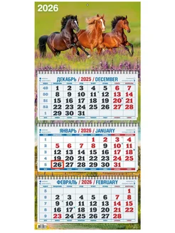 Календарь трехблочный, Год Лошади №1, 2026 год