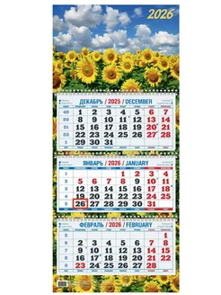 Календарь трехблочный, Подсолнухи в поле, 2026 год