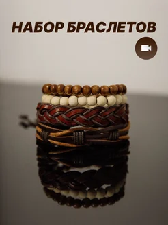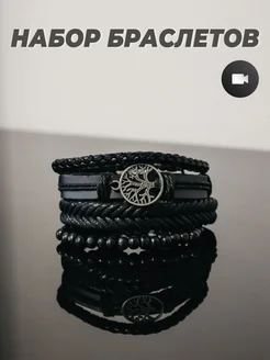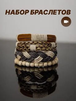 набор кожаных плетеных браслетов 4 шт