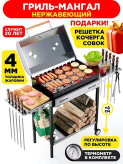 Гриль мангал нержавеющий с крышкой 4 регулируемый по высоте