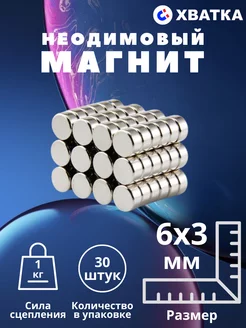Неодимовый магнит диск 6х3 мм - 30 штук