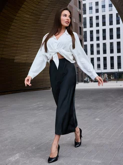 Атласная юбка из шелка миди