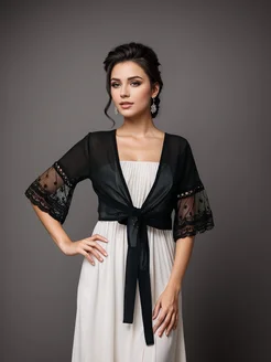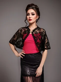 Болеро кружевное вечернее нарядное жакет укороченный черный