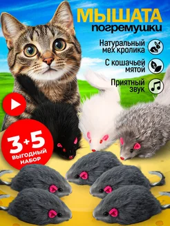 Игрушки для кошек мышки с мятой и погремушкой набор 3+5