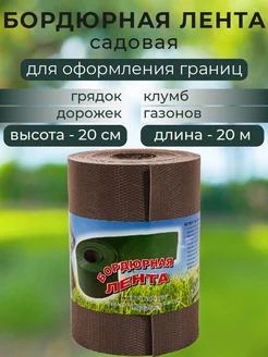 Лента бордюрная садовая высота 20см, длина 20 м коричневая
