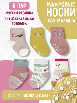 Носки для новорожденных антискользящие набор 6 пар