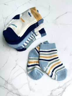 Носки детские для новорожденных со стопперами, набор 5 пар