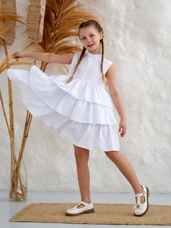 платье трехъярусное сарафан для девочки нарядное хлопковое