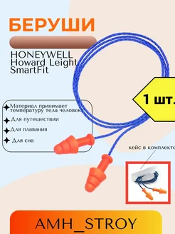 Противошумные вкладыши-беруши на шнурке в контейнере 1шт