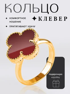 кольцо клевер чёрный бижутерия безразмерное перстень