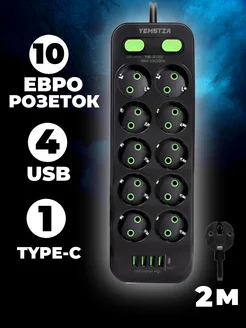 Сетевой фильтр 10 розеток 4 usb 1 type-c