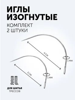 Иглы для шитья изогнутые (набор игл 3см+4см)