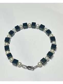 Браслет из натуральных камней агат и жемчуг