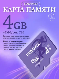Карта памяти microSD 4GB, Class10, 45 MB S