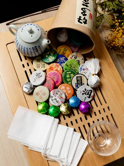 Шен пуэр китайский блин с лепестками роз бодрящий 357