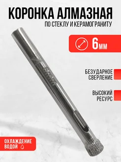 Сверло по керамограниту кафелю алмазное трубчатое 6 мм