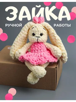 Мягкая игрушка для девочек вязанная плюшевая зайка