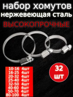 Хомут стяжка червячный нержавеющий 8 размеров 32 штуки