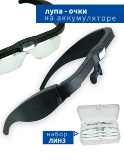 Очки лупа с подсветкой на аккумуляторе со сменными линзами