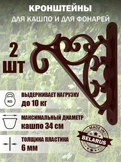 Кронштейн для кашпо коричневый держатель настенный подвесной