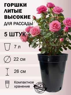 Горшки для рассады роз 7 л 5 шт. круглые высокие