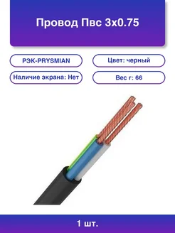 1шт. Провод ПВС 3х0.75 Ч (бухта) 100м