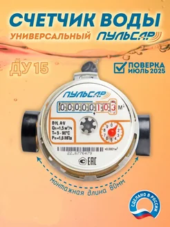 Счетчик воды универсальный L80 мм Ду 15 +К