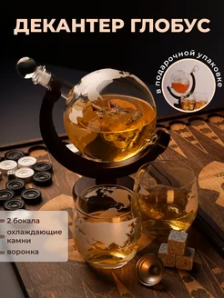 Графин глобус с кораблем для виски декантер подарочный
