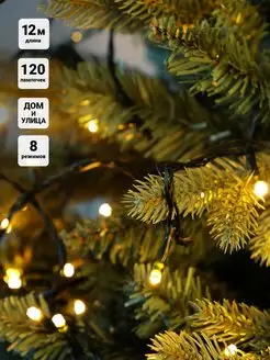 Гирлянда Нить, 120 белых LED, 12м, 8 режимов