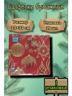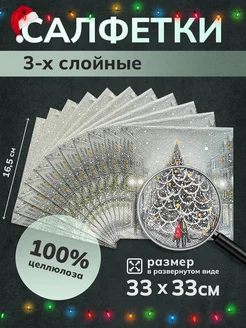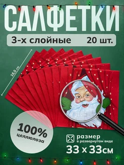 Салфетки бумажные новогодние на стол 33х33 20шт трехслойные