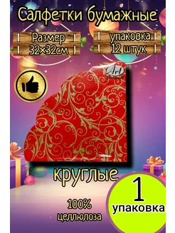Салфетки бумажные 3х слойные 32×32см круглые - 1 упаковка