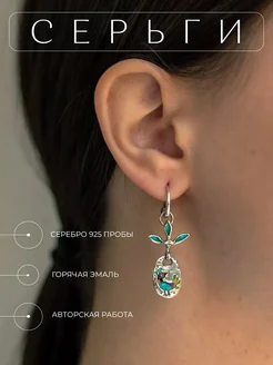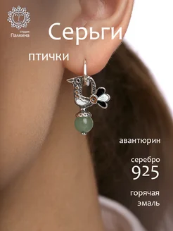 Серьги из серебра 925 с горячей эмалью Птички летние