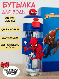 Бутылка для воды детская человек паук с трубочкой