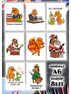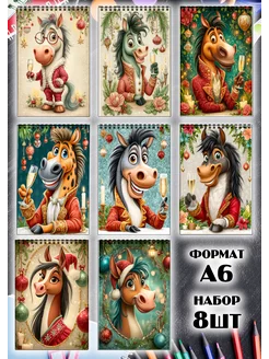 Блокнот год лошади на спирали набор 8 штук новогодний