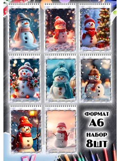 Блокнот снеговики на спирали набор 8 штук новогодний