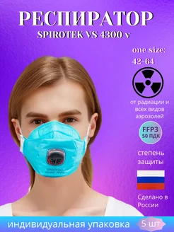 Респиратор от радиации SPIROTEK VS 4300 V FFP3 маска 5 шт