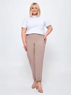 Брюки классические укороченные, больших размеров, на резинке