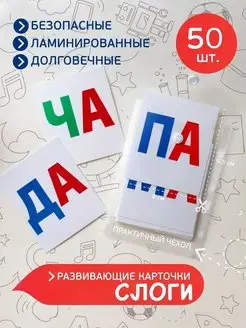 Развивающие карточки ламинированные обучающие чтению, слоги