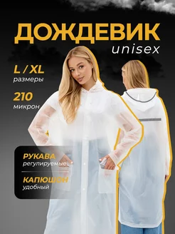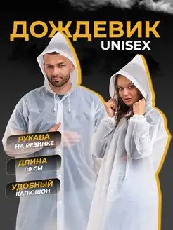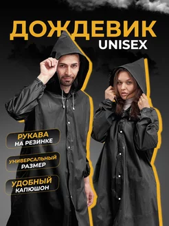Дождевик женский плащ с капюшоном серый водонепроницаемый