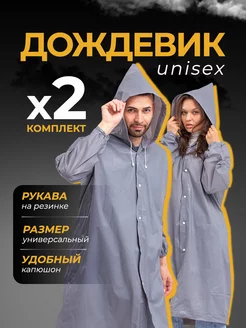 Дождевик плащ с капюшоном комплект 2 шт серый женский