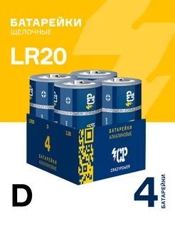 Батарейки алкалиновые LR20 (D, MN1300, 13A), 4 шт