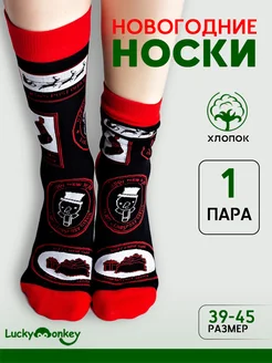 Носки Новогодние мужские черно-красные с Дед Морозом