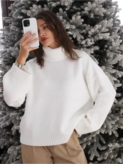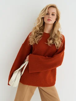 Свитер оверсайз длинный вязаный с широкими рукавами
