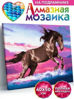 Вороной конь Алмазная мозаика на подрамнике 40х50 см