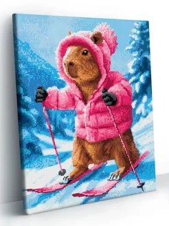 Капибара на лыжах Алмазная мозаика на подрамнике 40х50 см