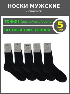 Носки мужские хлопок 100% тонкие смоленские набор 5 пар