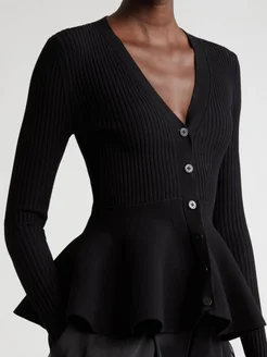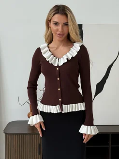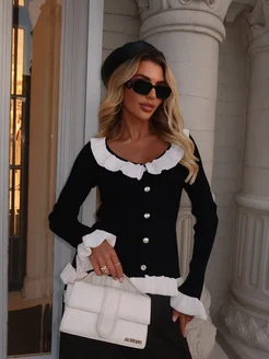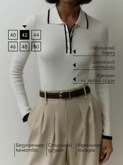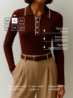 Лонгслив облегающий в рубчик джемпер поло с воротником