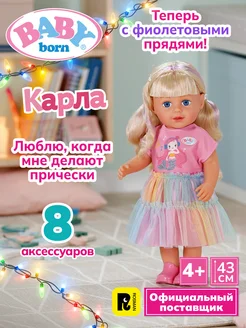 БЕБИ борн. Интерактивная кукла Сестричка Карла 43 см