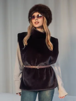 Манишка меховая длинная из эко норки с поясом